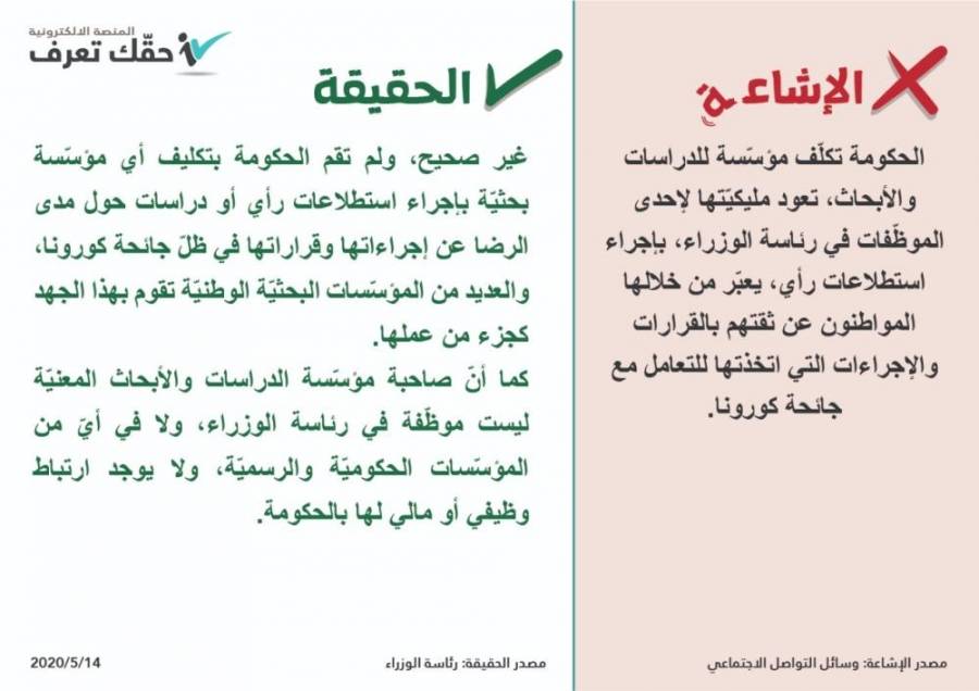 الحكومة تنفي تكليف أي مؤسسة بحثية بإجراء استطلاعات