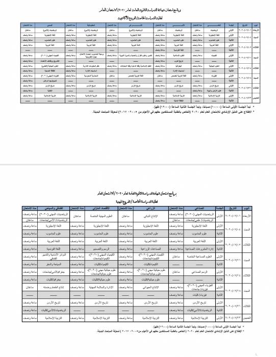 التربية تعلن البرنامج المعدل لامتحان التوجيهي 2020 للفروع الاكاديمية والمهنية