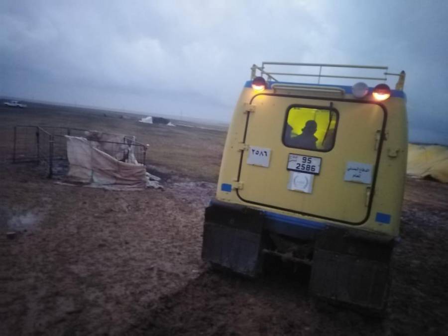 كوادر الدفاع المدني تقطع ٤ كم من السيول والوحل بمركبات خاصة لانقاذ ثمانية اشخاص داهمتهم السيول في محافظة معان .