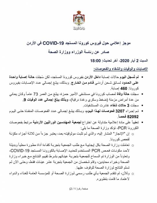 موجز إعلامي حول فيروس كورونا المستجد COVID-19 في الأردن