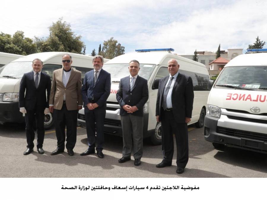 مفوضية اللاجئين تقدم 4 سيارات إسعاف وحافلتين لوزارة الصحة