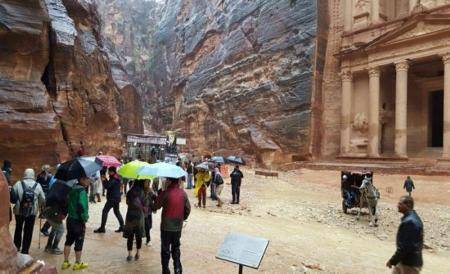 البترا الأثرية تواصل استقبال الزوار وسط الاجواء الماطرة