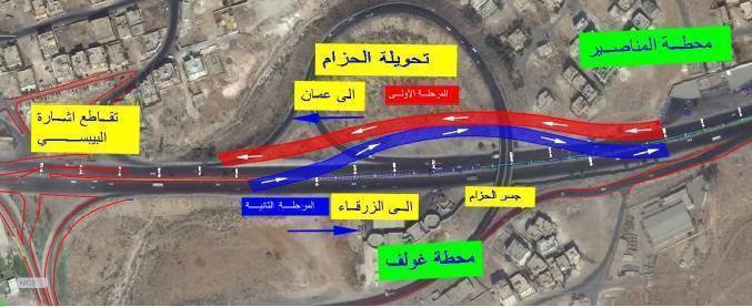 تحويلات على تقاطع اوتوستراد الزرقاء - عمان الجمعة والسبت