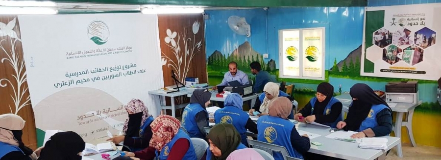 فريق مركز الملك سلمان للإغاثة ينهي الاستعدادات اللوجستية لتوزيع الحقائب المدرسية على الطلاب السوريين في مخيم الازرق