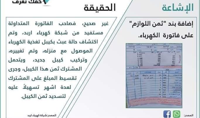 نفي إضافة بند اللوازم لفاتورة الكهرباء