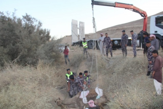 إنقاذ جمل سقط داخل حفرة في الحسا