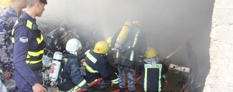 الدفاع المدني يخمد حريق محل لدهان المركبات في العاصمة