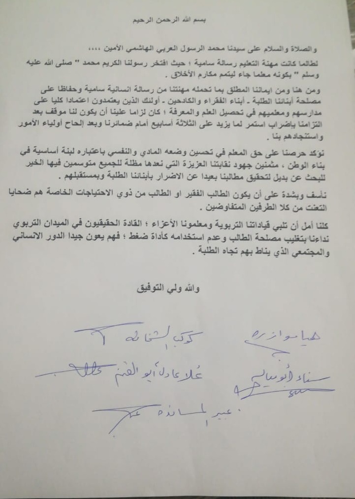 • خمسة مديرات في مادبا سيكسرن الاضراب الاحد وتغليب مصلحة الوطن والطالب