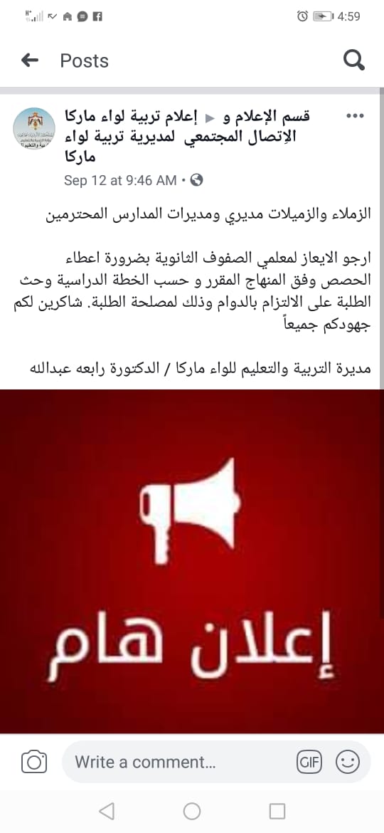 مديريات تربية السلط والشونة الجنوبية تدعوان الطلبة للدوام غدا