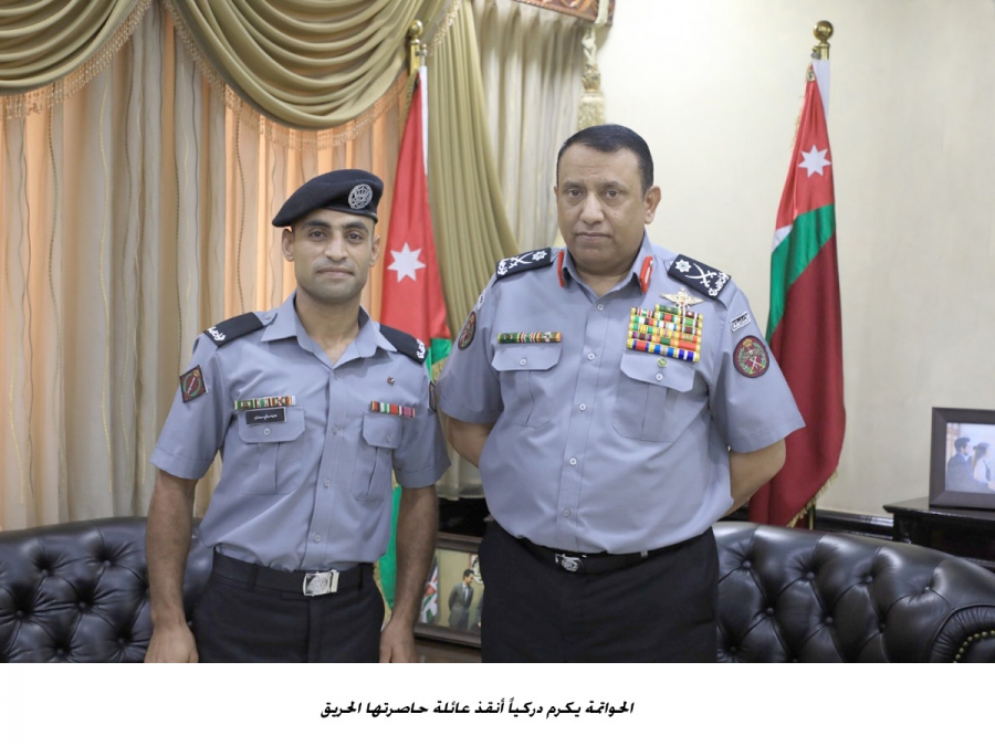 الحواتمة يكرم دركياً أنقذ عائلة حاصرتها الحريق