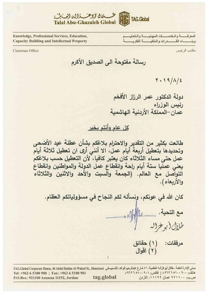 ابو غزالة يعترض على اسبوع عطلة عيد الاضحى