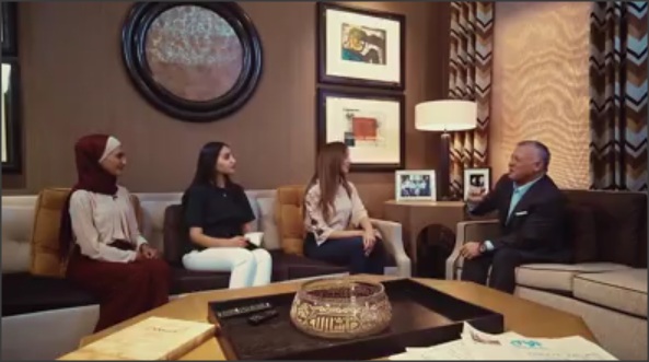 الملك في لقاء غير تقليدي مع ٣ طالبات(فيديو)