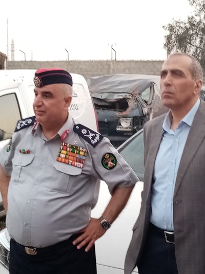 مدير الدفاع المدني اللواء مصطفى البزايعه و مدير الامن العام اللواء فاضل الحمود يشرفان على مكافحة الحريق الذي شب في مصنع للدهانات بمنطقة زيزيا