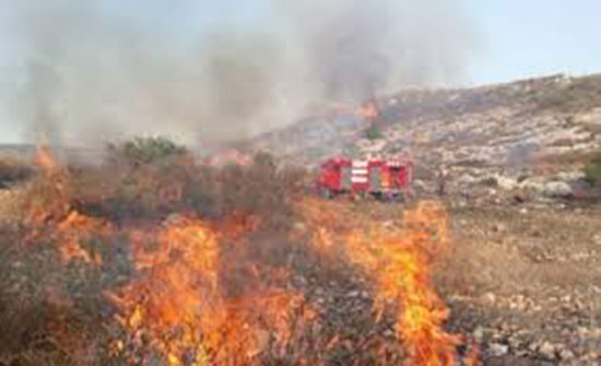 حريق أعشاب جافة وأشجار حرجية وأشجار مثمرة ومحاصيل زراعية في محافظة البلقاء
