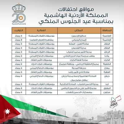 احتفالات تعم المملكة بمناسبة العيد العشرين للجلوس الملكي يوم الأحد المقبل
