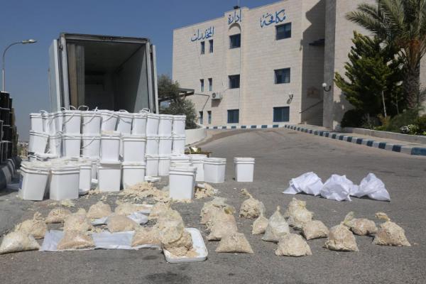 احباط تهريب 300 ألف حبة مخدرة أخفيت داخل مادة غذائية"حلاوة"وتلقي القبض على أربعة اشخاص