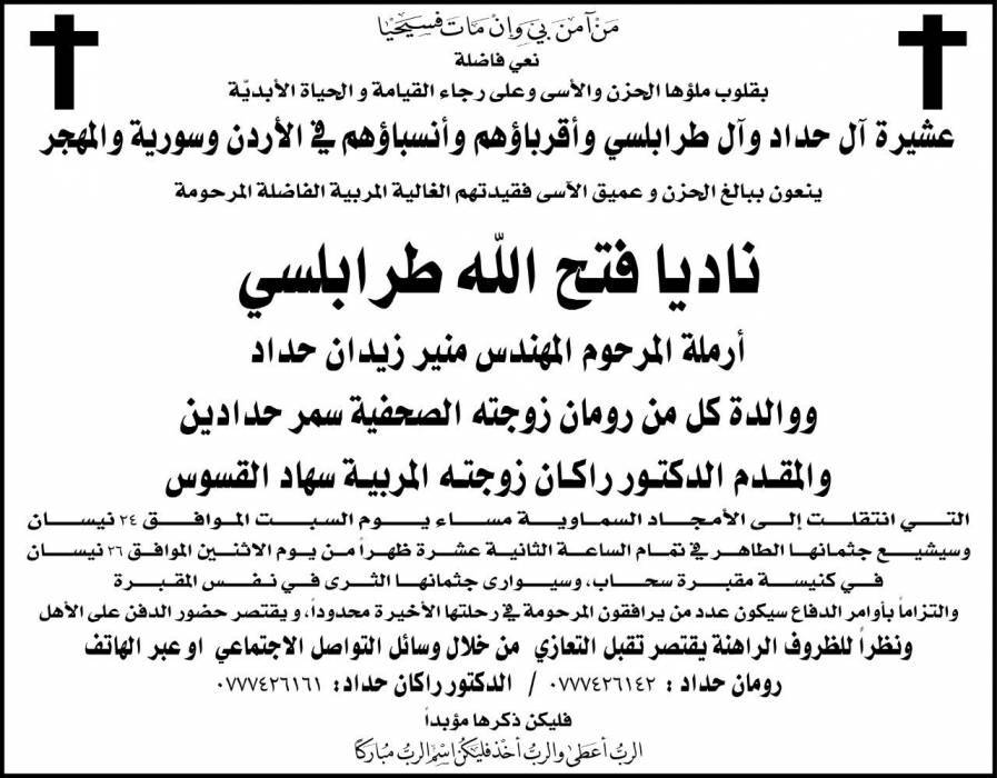 عشيرة العربيات عامة و الحمود خاصة و أنسباؤهم ينعون المرحوم احمد محمد عبد الله الحمود العربيات "أبو حسام"