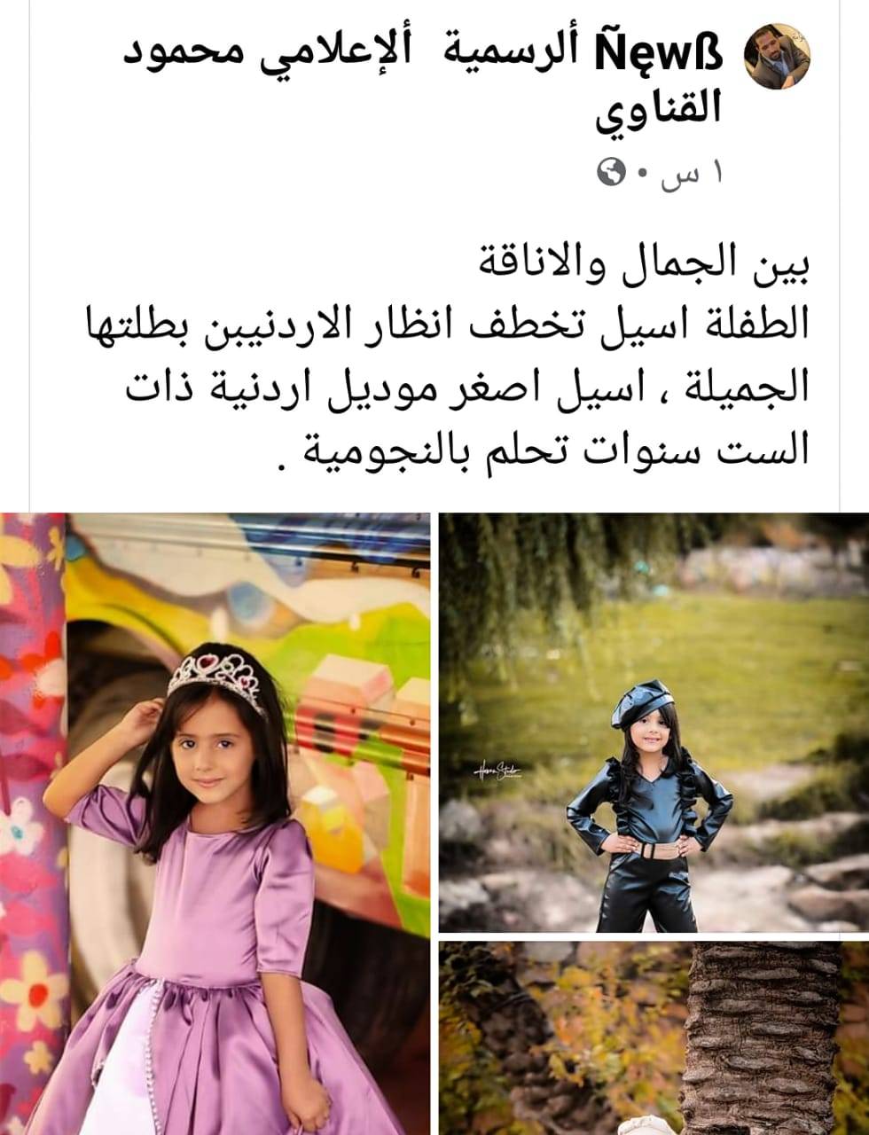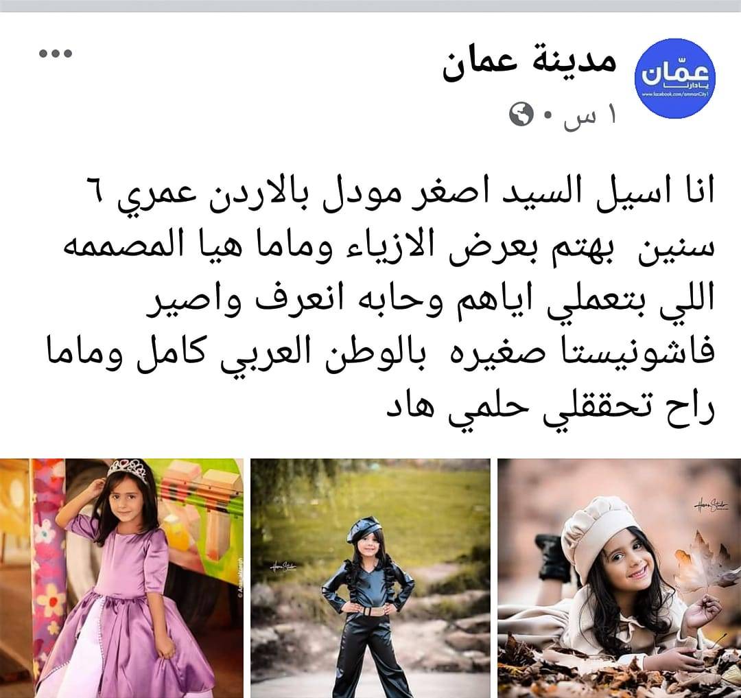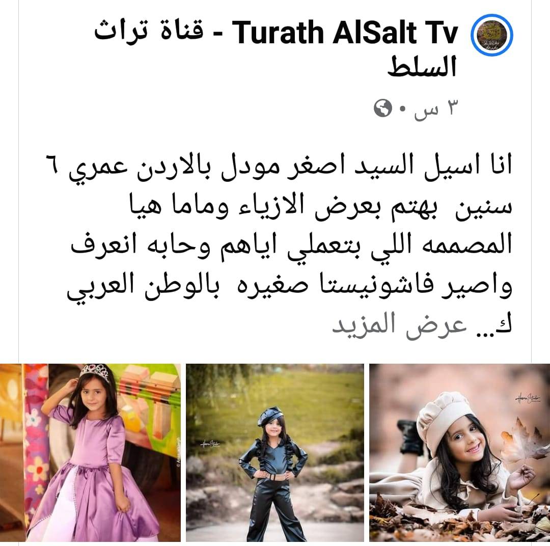 نبض البلد -تداول عدد من نشطاء مواقع التواصل الاجتماعي صوراً لأصغر عارضة أزياء أردنية "أسيل السيد" وتبلغ من عمرها الست سنوات فقط.