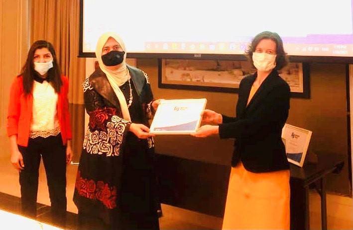 سلّمت السفيرة البريطانية لدى الأردن، بريدجت بريند، جائزة نيوتن 2020 لمشروع (ماضينا، مستقبلنا، جميعنا في فينان) للفريق الأردني الفائز ، ممثلاً بالدكتورة فاطمة النمري من جامعة البترا.