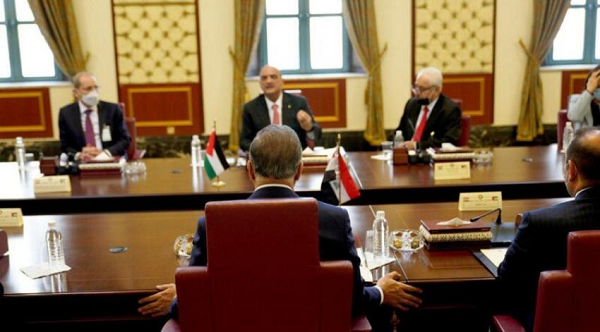 واكد، ان هذا التعاون الثلاثي يستهدف ترسيخ وتكريس المصالح الاقتصادية المشتركة ليس فقط للدول الثلاث وانما للدول العربية برمتها واي اطراف اخرى مهتمة للتعاون معنا على ارضية اقتصادية ضمن الرؤى التي تعود بالنفع على شعوب دولنا .