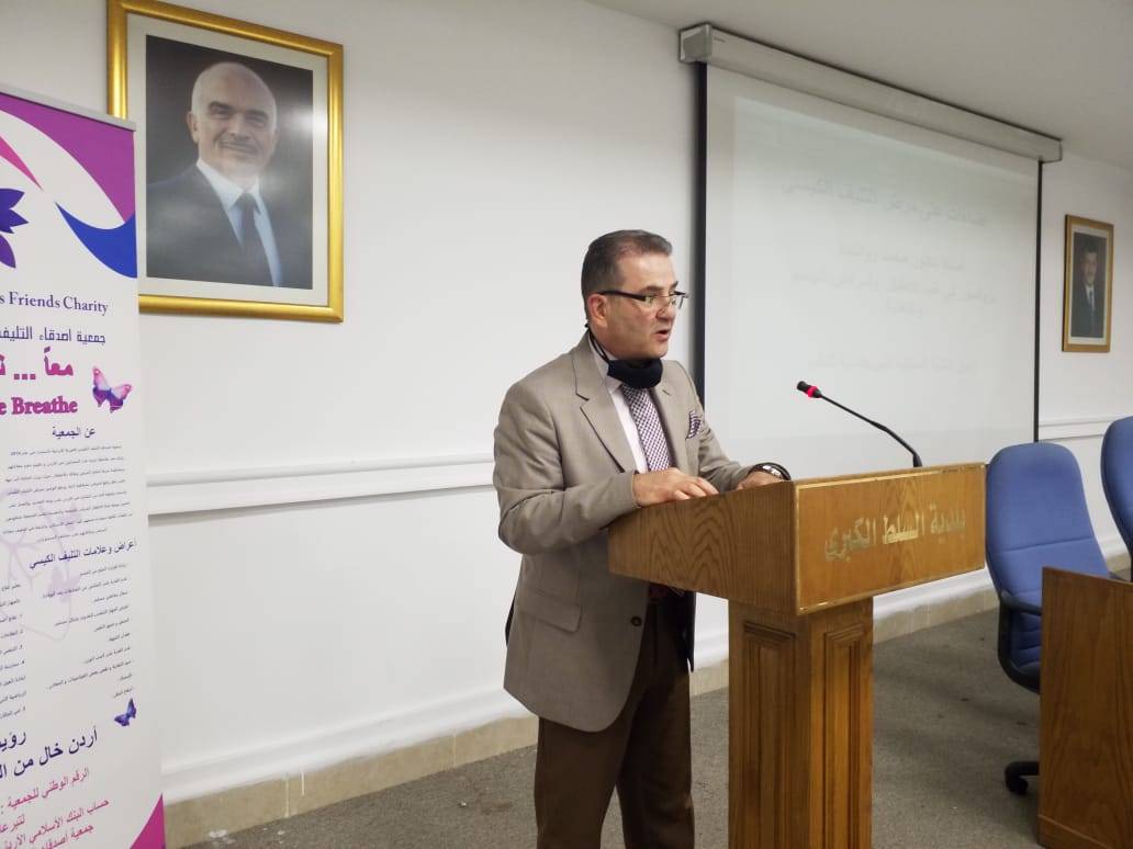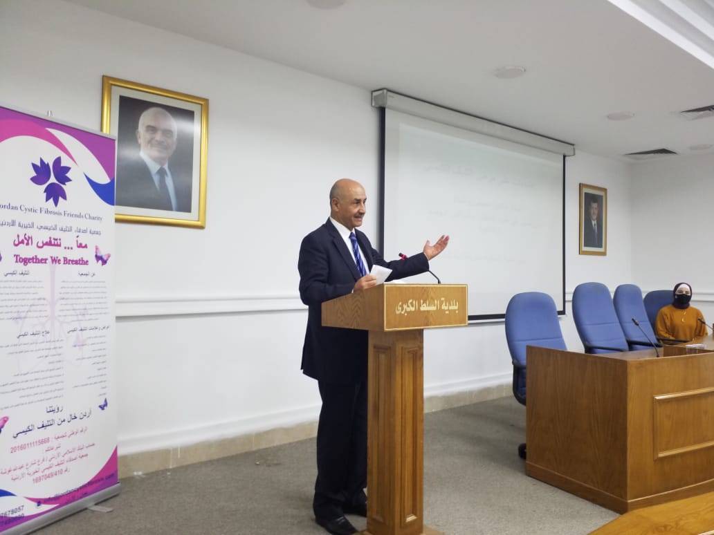 حيث رحب رئيس بلدية السلط الكبرى المهندس خالد خشمان بالحضور مؤكدا على اهمية التشاركية والتعاون مع الجهات ذات العلاقة لإنجاح مثل هذه المحاضرات العلمية لافتا ان هذه المحاضرات تساهم في توعية وتثقيف المجتمع المحلي بالعديد من القضايا ومنها الامراض المختلفة مقدما الشكر والتقدير لجامعة البلقاء التطبيقية وجمعية اصدقاء التليف الكيسي على تنظيم هذه المحاضرة القيمه