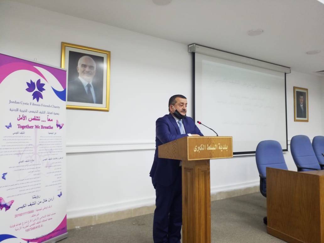 نظمت بلدية السلط الكبرى بالتعاون والتنسيق مع وحدة التنمية وخدمة المجتمع المحلي في جامعة البلقاء التطبيقية و جمعية اصدقاء التليف الكيسي محاضرة توعوية بعنوان " مرض التليف الكيسي اسبابه وطرق الحد من انتشاره" بحضور رئيس بلدية السلط الكبرى المهندس خالد خشمان و الاستاذ الدكتور ناصر الكلوب نائب الرئيس لشؤون الكليات مدير وحدة التنمية وخدمة المجتمع المحلي والبروفسور محمد الرواشده مستشار امراض الجهاز الهضمي والكبد وتنظير الاطفال والسيده بثينه الصعوب رئيسة جمعية اصدقاء التليف الكيسي وعدد من أبناء مدينة السلط في قاعة الإستقلال/ بلدية السلط الكبرى.