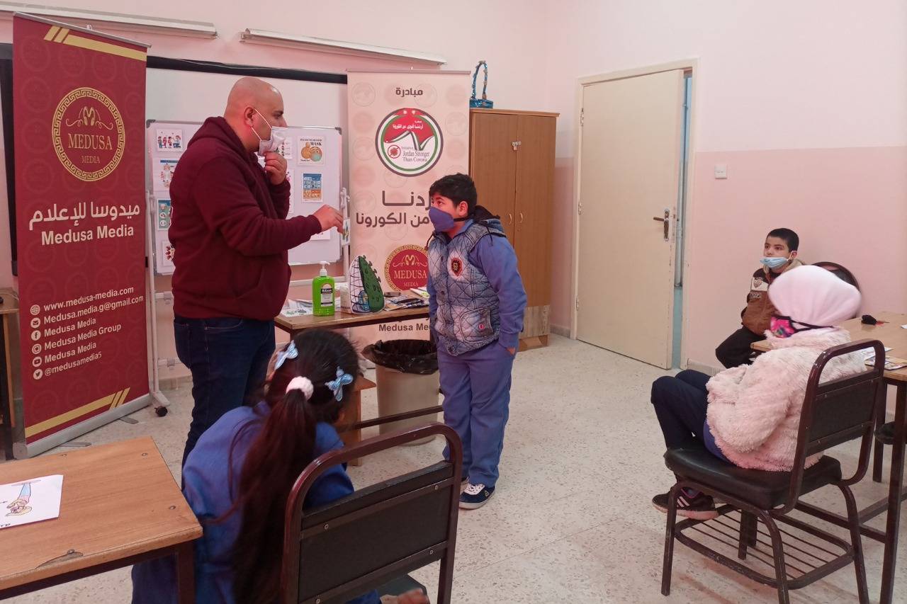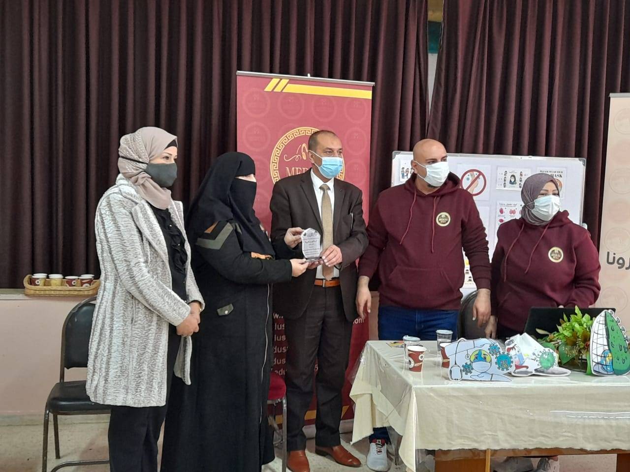 عقد فريق المبادرة الوطنية ”أردنا أقوى من الكورونا” أولى الجلسات التثقيفية التوعوية ضمن المرحلة الثانية من مراحل المبادرة تحت شعار (كيف نكون قدوة نحو بيئة خالية من الوباء ونحو جيل واعٍ) في مدرسة عائشة أم المؤمنين الاساسية المختلطة في لواء سحاب الهادفة الى توعية الطلبة بالطرق الصحيحة في اتباع الاجراءات الاحترازية لحصر الوباء ومنع انتشاره في البيئة المدرسية.