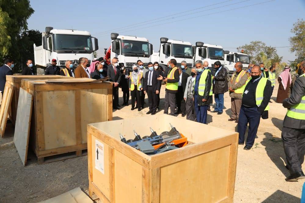وأشرف الوزير سعيدان والسفير الالماني على تسلم الاليات المقدمة بمنحة من بنك الاعمار الالماني بقيمة (1.3) مليون يورو وتتضمن عدد من المعدات واليات لاستدامة أعمال الصيانة والتشغيل لخدمة مشاريع الري المنفذة في سلطة وادي الأردن وتحقيق سرعة الاستجابة ورفع مستوى الخدمات المقدمة للمزارعين والمواطنين في مناطق وادي الاردن .