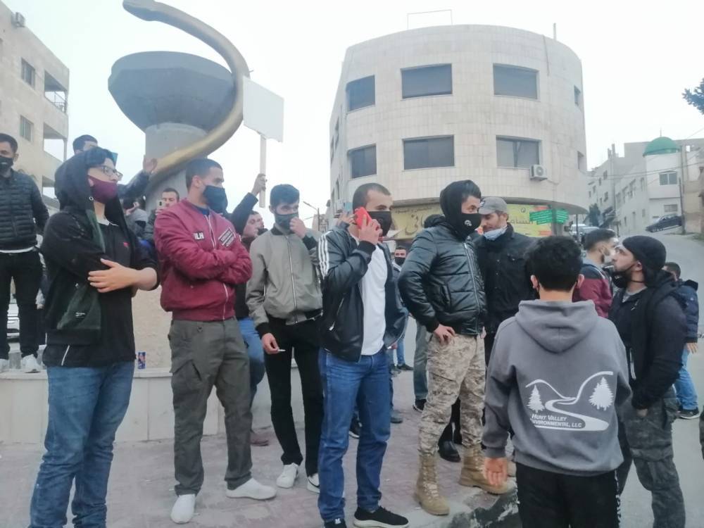 نبض البلد -وقفه تضامنيه على دوار المستشفى في جرش تضامن مع الاهل بالسلط واعتراضا على أمر الدفاع لإغلاق المحلات الساعه ٦ مساء