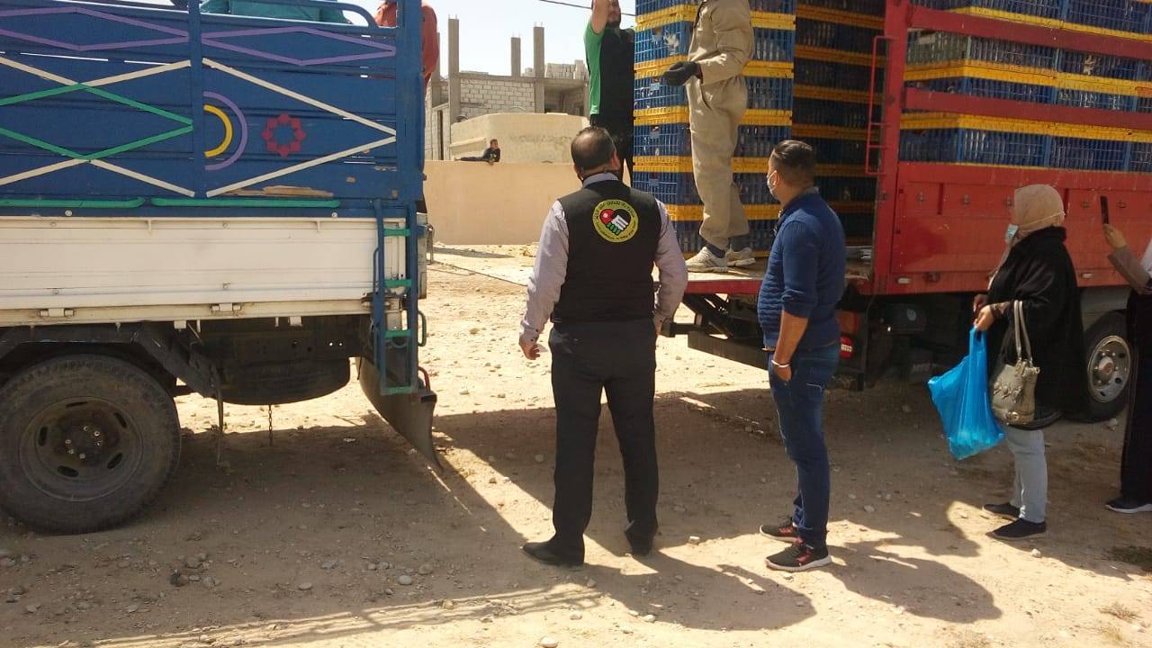 نبض البلد -بهدف التخفيف من معاناة الأسر العفيفه وضمن الشراكه الاسترتيجية مع دائرة تنمية أموال الأوقاف وزع فريق مبادرة" يلا نتعاون على الخير "اليوم الثلاثاء مادة الدجاج على( 1000) اسره عفيفة فى منطقة غور المزرعة وغور حديثه .