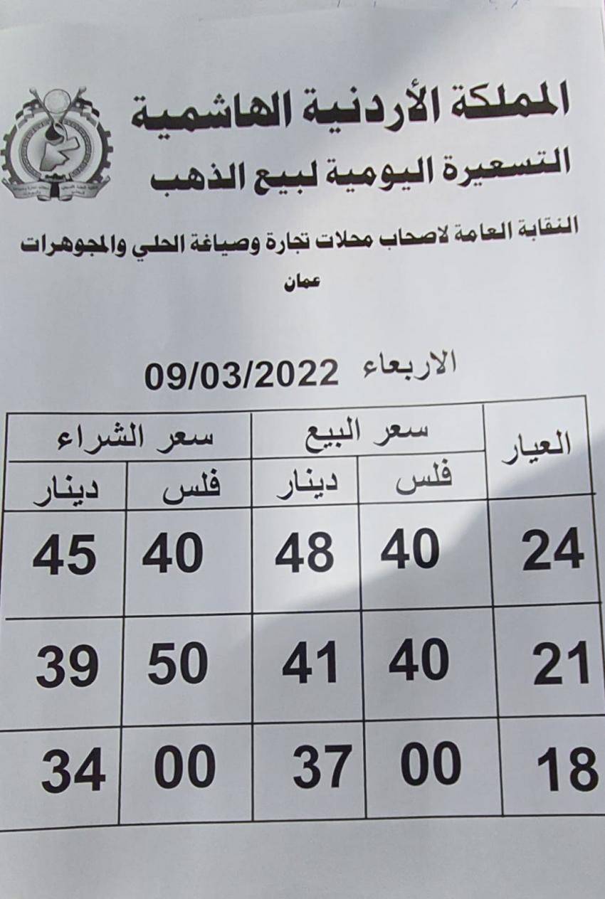 كما ارتفع سعر بيع غرام الذهب عيار 24 ليصبح 48.4 47،80 دينارا بعدما كان يباع الثلاثاء بـ 47.80 دينارا، وبلغ سعر غرام الذهب عيار 18 نحو 37 ديناراً، فيما كان سعره الثلاثاء 36.50 دينارا.