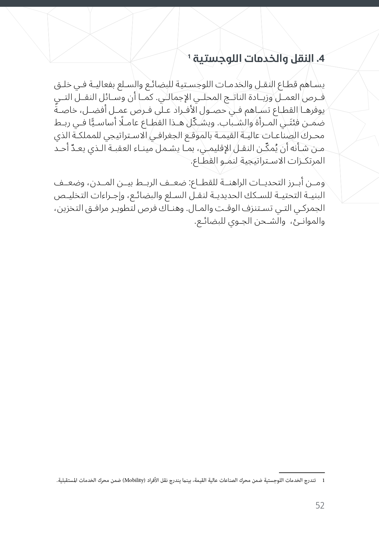 وتتمحور رؤيةُ التحديث الاقتصادي للمملكة حول شعار "مستقبل أفضل” وتقوم على ركيزتين استراتيجيتين: النمو المتسارع من خلال إطلاق كامل الإمكانات الاقتصادية، والارتقاء بنوعية الحياة لجميع المواطنين، بينما تشكل الاستدامة ركنًا أساسيًّا في هذه الرؤية المستقبلية.