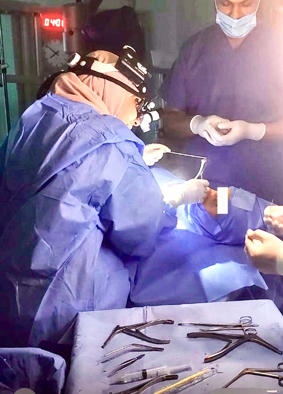 وأجرت العملية الدكتورة أسماء مصلح، استشارية تجميل وترميم الجفن ومحجر العين وقناة الدمع، بالتعاون مع فريق التخدير و فريق التمريض في وحدة العمليات النهارية .