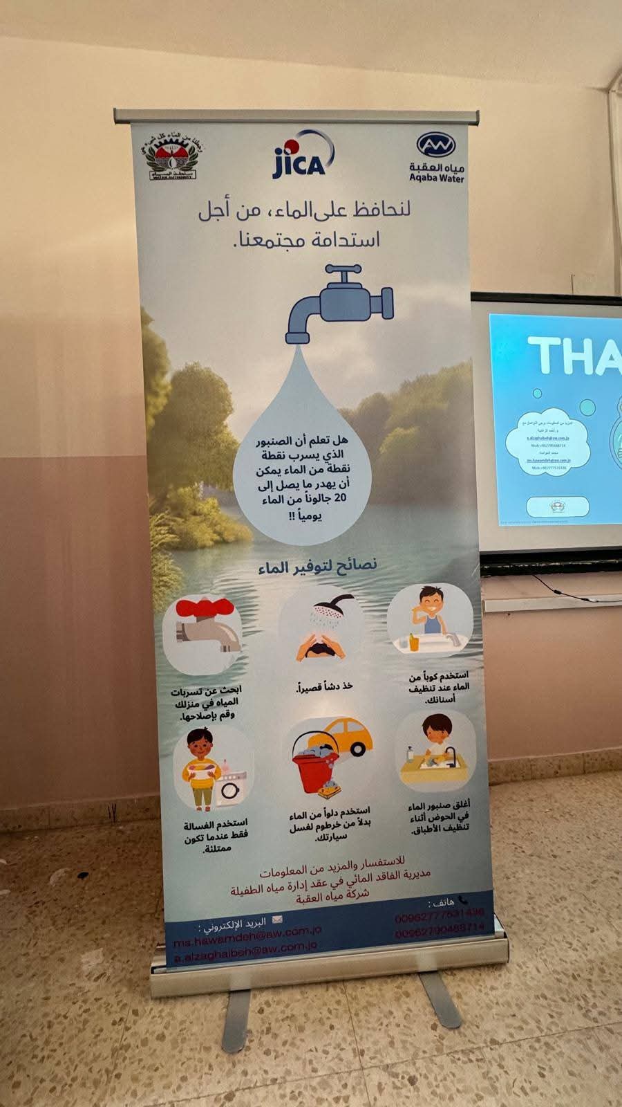 في مدارس منطقة جرف الدراويش ذكور و إناث بمحافظة الطفيلة و تناولت المحاضرات عن أهمية الحفاظ على المياه وطرق ترشيد الإستهلاك وشرح تعريف الفاقد المائي و الحفاظ على ذالك