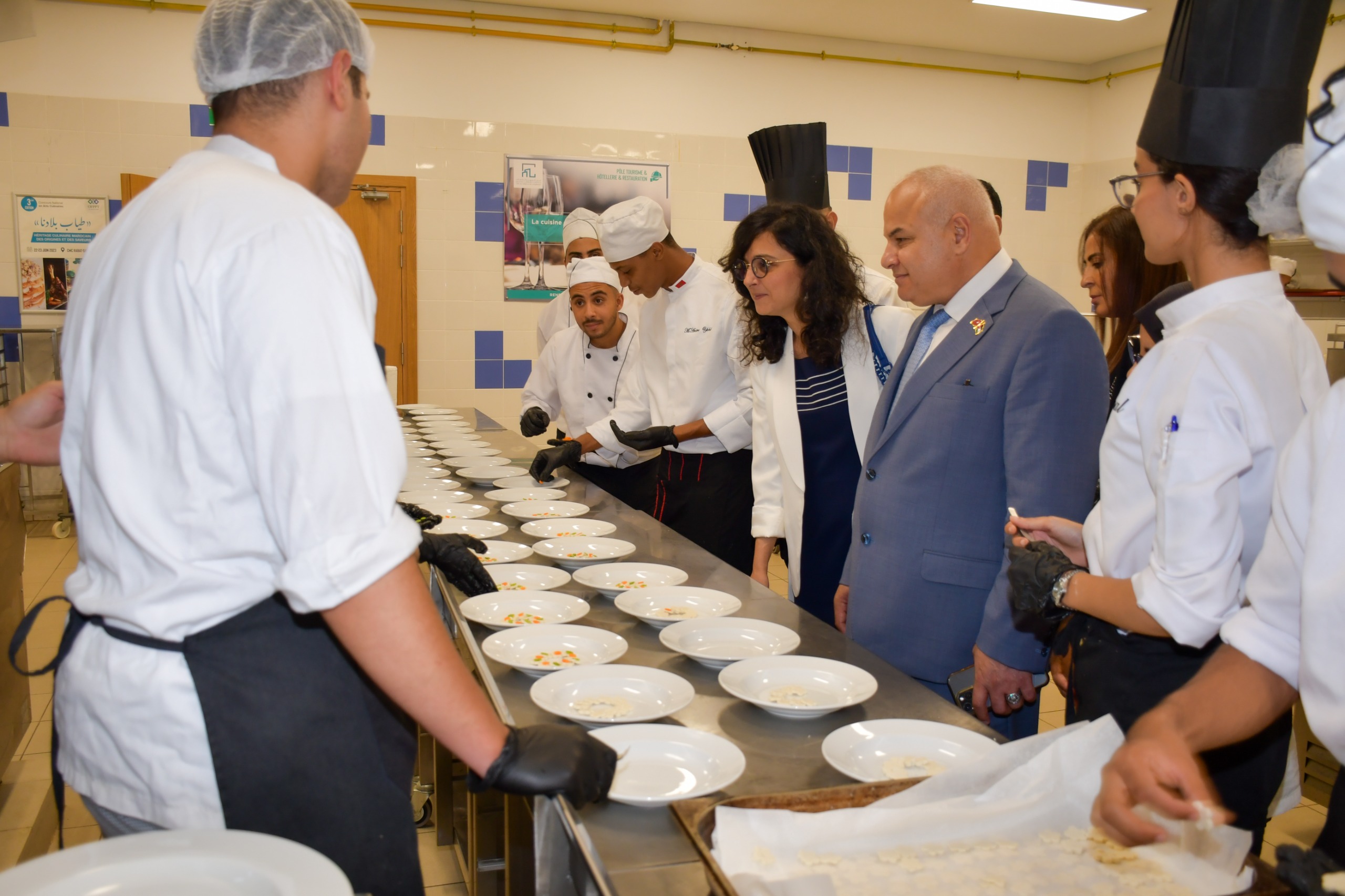 واطلع الوزير على المهن التي يركز عليها في التدريب المهني في المملكة المغربية كالزراعة وصيانة السيارات والقطاع السياحي وغيرها من القطاعات.