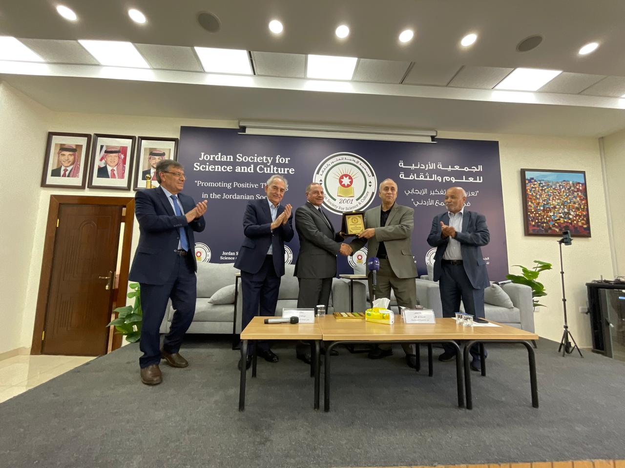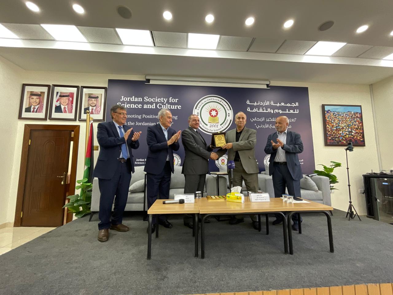 وفي نهاية المحاضرة أجاب على عدد من الأسئلة والاستفسارات التي تم طرحها من أعضاء الجمعية والحضور.. كما وقامت الجمعية الاردنية للعلوم والثقافة بتقديم درع الجمعية ل. د. حسام ابوعلي تكريم له .