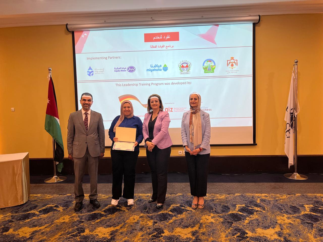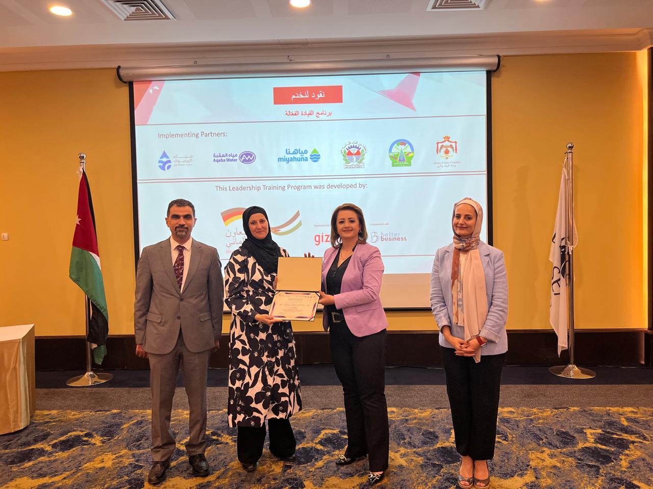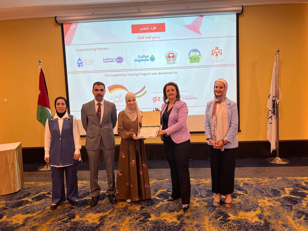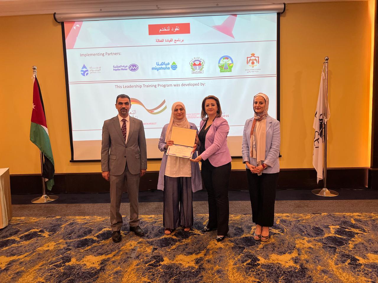 وخلال حفل الختام، رعت مديرة وحدة دراسات المرأة في وزارة المياه والري، السيدة نيفين الكفوف فعاليات اختتام البرنامج وتخريج المشاركات وتسليمهن الشهادات وأكدت على أن القيادة مسؤولية تُحمَل على الأكتاف وتُمارس برؤية ووعي وإيمان بالقدرة على التغيير.