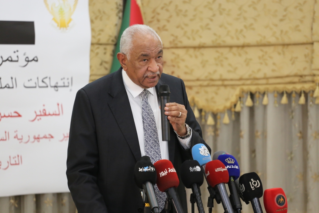 السفير السوداني يعقد مؤتمراً صحفياً حول إنتهاكات المليشيا بالفاشر