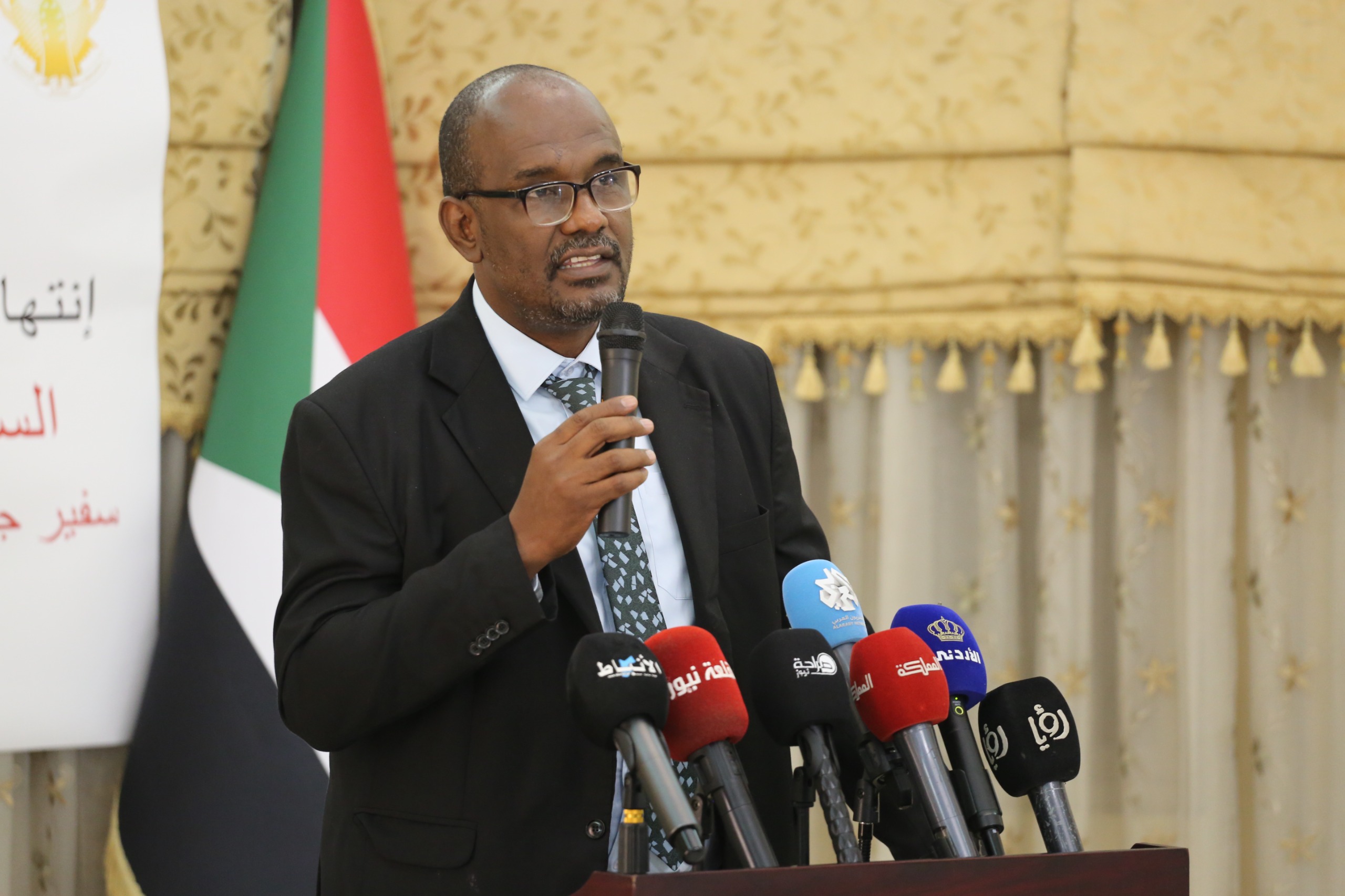 عقد سفير جمهورية السودان في المملكة حسن صالح سوار الذهب، بمقر إقامته بضاحية عبدون، اليوم الأربعاء، مؤتمراً صحفياً تناول فيه التطورات الأخيرة للأوضاع بالسودان، خاصة الأوضاع المأساوية والإنتهاكات التي جرت في مدينة الفاشر.