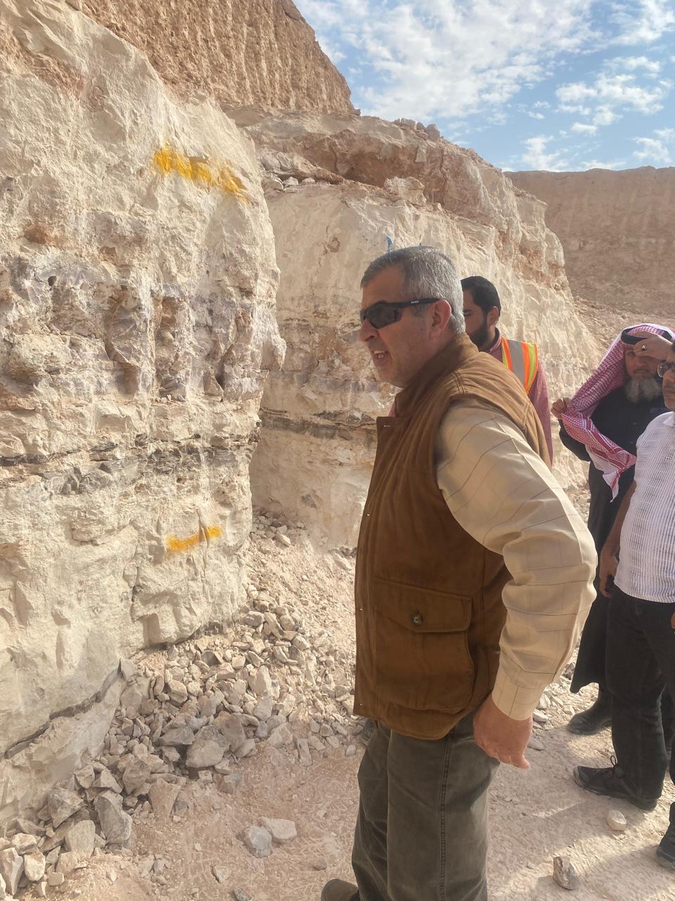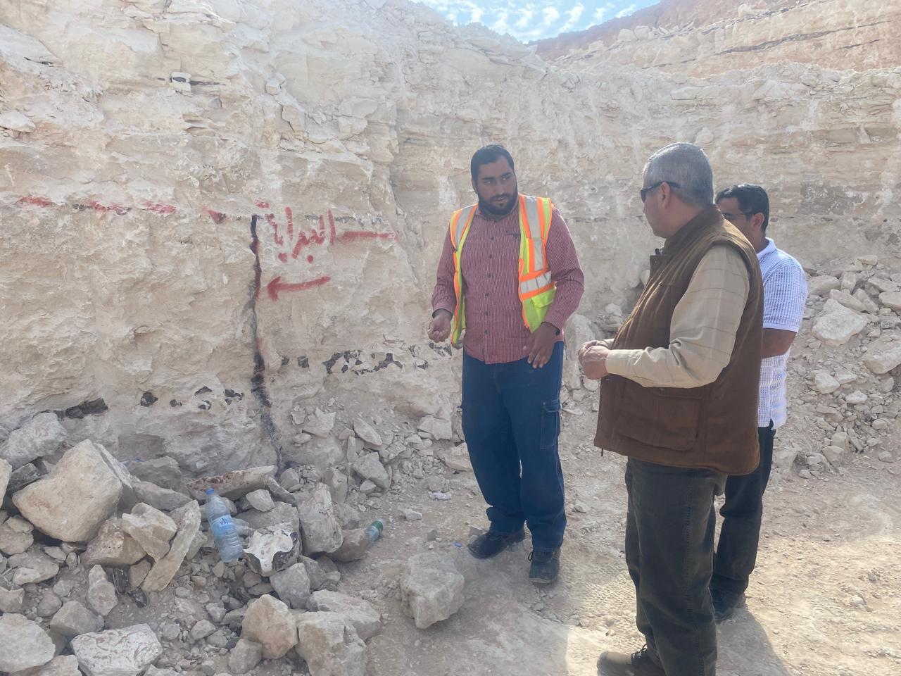 وخلال الجولة، استمع الخرابشة إلى شرح فني قدّمه الفريق المُختص حول مواقع الحفر وآليات جمع العينات الصخرية وتجهيزها للشحن المخبري، كما اطلع على مراحل العمل الميداني في المشروع.