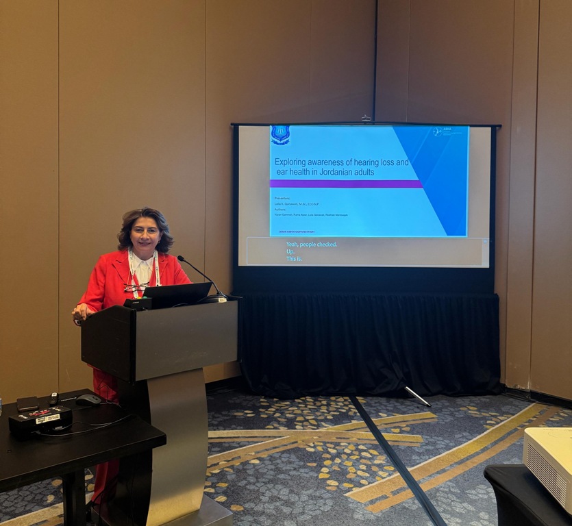شاركت كلية العلوم الطبية المساندة في جامعة عمّان الأهلية بأعمال مؤتمر الجمعية الأمريكية للنطق واللغة والسمع (ASHA) في واشنطن، حيث مثّل الكلية عضو هيئة التدريس ليلى قنواتي، التي قدّمت ورقتين بحثيتين وجلسة مناقشة بحثية ضمن فعاليات المؤتمر.