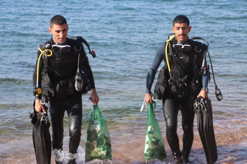 حملة لتنظيف جوف البحر بمحمية العقبة البحرية