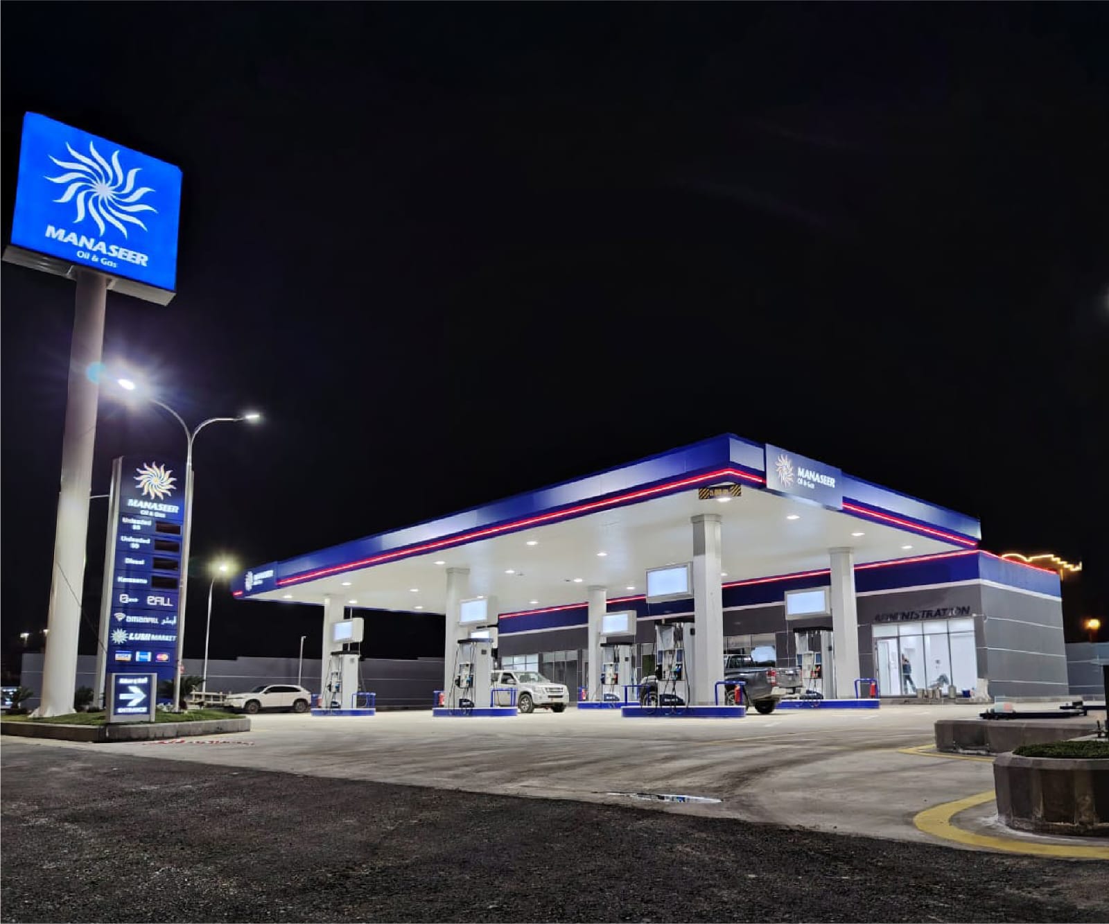 شركة المناصير للزيوت والمحروقات من أوائل الشركات الرائدة محلياً في بناء وتشغيل سلسلة من محطات الوقود حيث تم تشغيل أولى محطاتها عام 2001 بشكل جذاب ومميز وبمواصفات عالمية تضاهي مثيلاتها في الدول المتقدمة، وحرصت الشركة منذ البداية على إستخدام أحدث التقنيات التكنولوجية لخدمة زبائنها وروادها من تقديم خدمات الدفع بإستخدام البطاقات الائتمانية للعميل وتقديم أفضل حلول إعادة التعبئة مثل البطاقات الالكترونية الخاصة بشركة المناصير المدفوعة مسبقاً eCash وبطاقة إعادة التعبئة الالكترونية من المناصير الـ eFill ،وأيضاً الخدمة الأكثر تطوراً بالمملكة وهي Aman Fill والتي تعمل على التزود بالوقود من خلال خاصية ترددات الراديو للتعرف على هوية المركبات في المحطات وتعبئة الوقود.