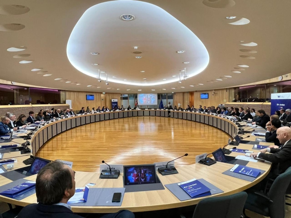 وضم الوفد وزير الصناعة والتجارة والتموين المهندس يعرب القضاة، ووزيرة التخطيط والتعاون الدولي زينة طوقان، ووزير الاستثمار الدكتور طارق أبو غزالة، إلى جانب السفير الأردني في بروكسل يوسف البطاينة.