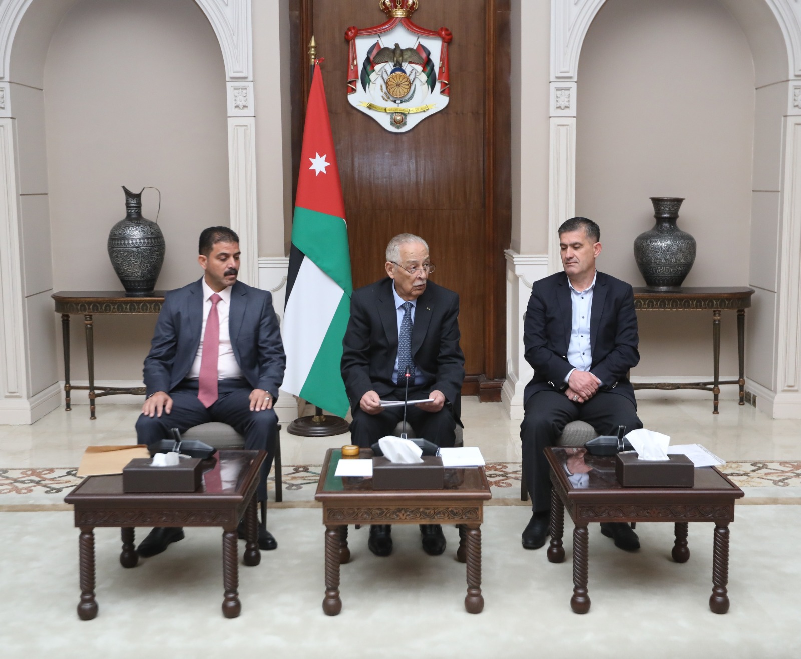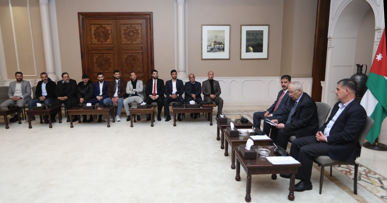 التقى رئيس الديوان الملكي الهاشمي يوسف حسن العيسوي، اليوم الخميس، في الديوان الملكي الهاشمي، وفداً شبابياً من أبناء عشائر القيسية.