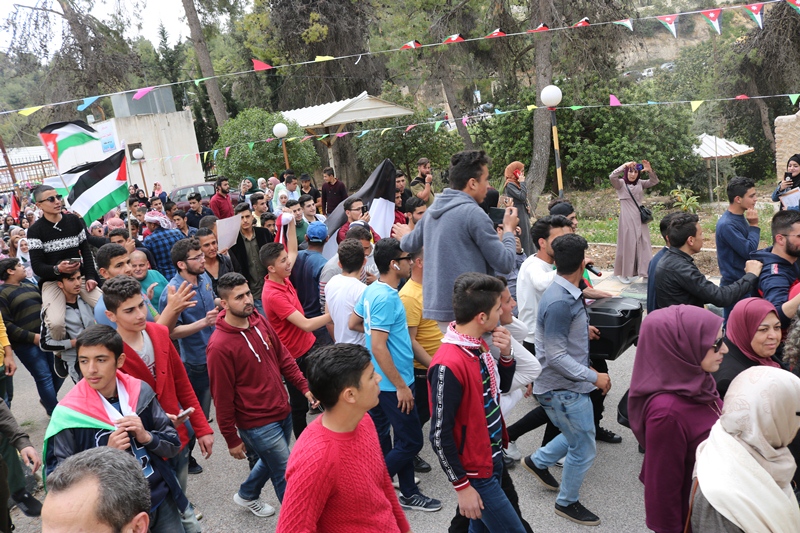 وهتف الجميع نعم جلالة الملك ولا للتوطين ولا للوطن البديل ولا للتنازل عن الوصاية الهاشمية على المقدسات الاسلامية في فلسطين اسلامية ومسيحية .