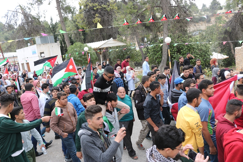 وتضمنت المسيرة رفع اعلام الأردن وصور جلالة الملك عبدالله الثاني، كما تضمنت كلمات وقصائد وطنية عبرت عن حب الوطن وولاء وانتماء الشعب لقيادته الهاشمية.