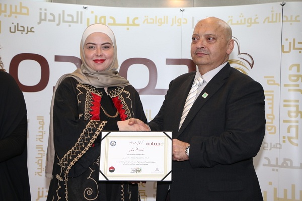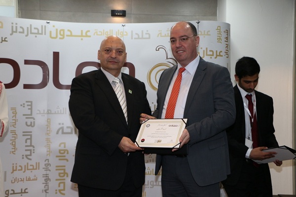 كما عبر رائد حماده عن جزيل شكره وتقديره لغرفة تجارة عمان ولكافة الهيئات الرسمية والمؤسسات والمدارس والجامعات الذين استضافوا المبادرة وكثفوا جهودهم لجمع التهاني وقدم لهم شهادات التكريم تقديراً لجهودهم الكبيره.
