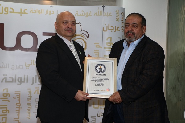 بعد النجاح الكبير الذي حققته مجموعة مطاعم حماده في دخول موسوعة جينيس بمبادرة كرنفال عيد الأم وبعد استكمال كافة الاجراءات الخاصة بمؤسسة جينيس العاليمة، والحصول على الاعتمادات الرسمية من مؤسسة جينيس العالمية وعلى شهادات جينيس الرسمية التي تقدم لشركاء النجاح أقامت المجموعة حفلاً مهيباً في الصالون الثقافي في نادي حماده تكريماً لكافة الجهات الرسمية والمدارس والجامعات والمؤسسات ممن كان لهم بصمة مميزة ودوراً هاماً ساهم في تحقيق الحلم والوصول إلى الهدف.