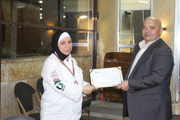 نظم السيد رائد حماده ممثل قطاع المواد الغذائية وعضو غرفة تجارة الأردن مساء أمس حفل تكريم خاص للوفد الأردني من أعضاء النادي الأردني للسيدات في جمعية الطهاة الأردنية بعد إحرازه المركز الأول في المهرجان الدولي الذي أقيم في المملكة المغربيه. أقيم هذا نادي حماده في الصالون الثقافي التابع لمجموعة حماده، وحضر التكريم الشيف شادي أبو خديجه رئيس نادي المطبخ الأردني للسيدات وأعضاء مجلس الإدارة وعدد كبير من أعضاء الجمعية.
